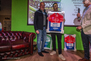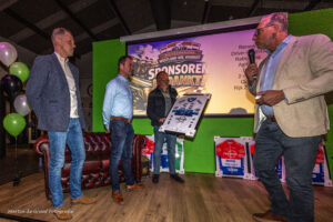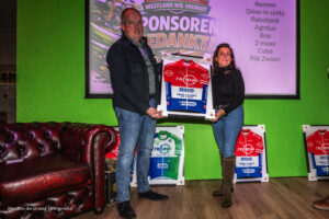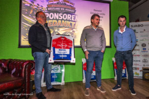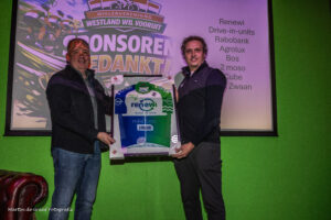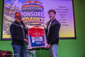 Tijdens de huldigingsavond/aftrap 75 jaar Westland Wil Vooruit werden de sponsors van de vereniging in het zonnetje gezet. Als dank kregen ze uit handen van Paul Slotboom van de sponsorcommissie van de vereniging een ingelijst wielershirt.